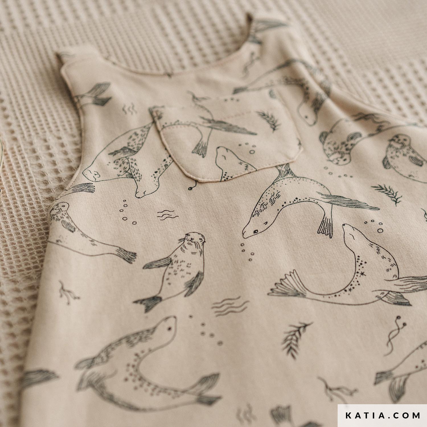 Découvrez le côté le plus tendre de la vie marine avec le tissu en swete léger pour l’été, avec un joli motif d’otaries nageant entre les bulles et es algues qui les entourent sur un fond dans un beige tout doux.