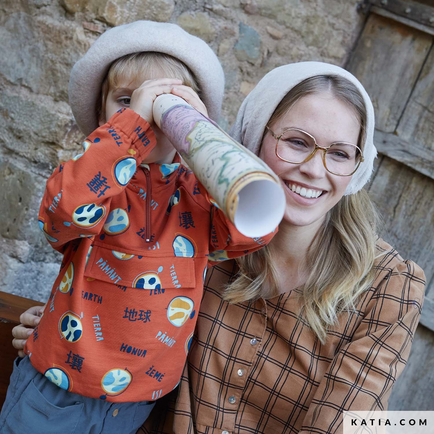 Ce tissu sweat, imprimé de globes terrestres de différentes couleurs sur fond orange est parfait pour coudre des vêtements chauds et confortables tels que des sweat-shirts, des pantalons de sport ou des vestes.