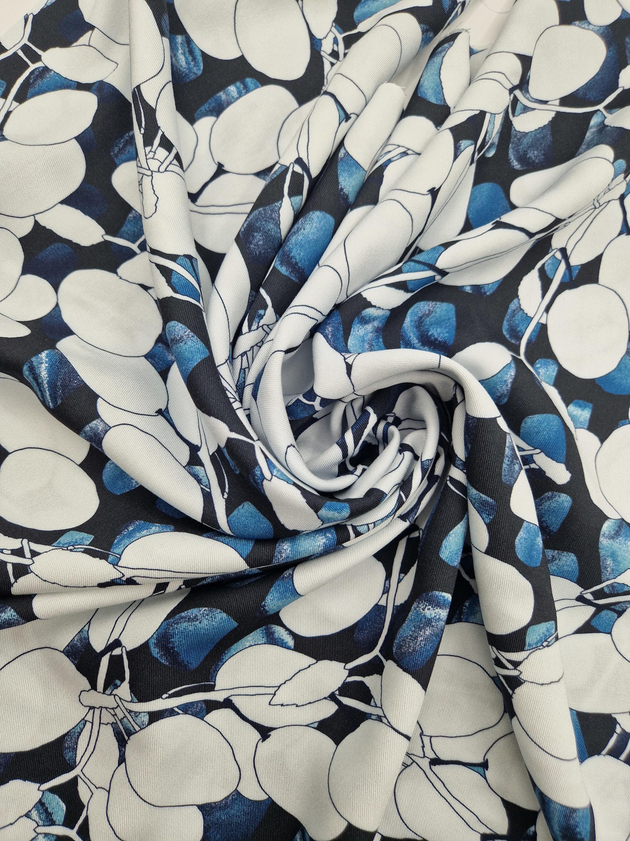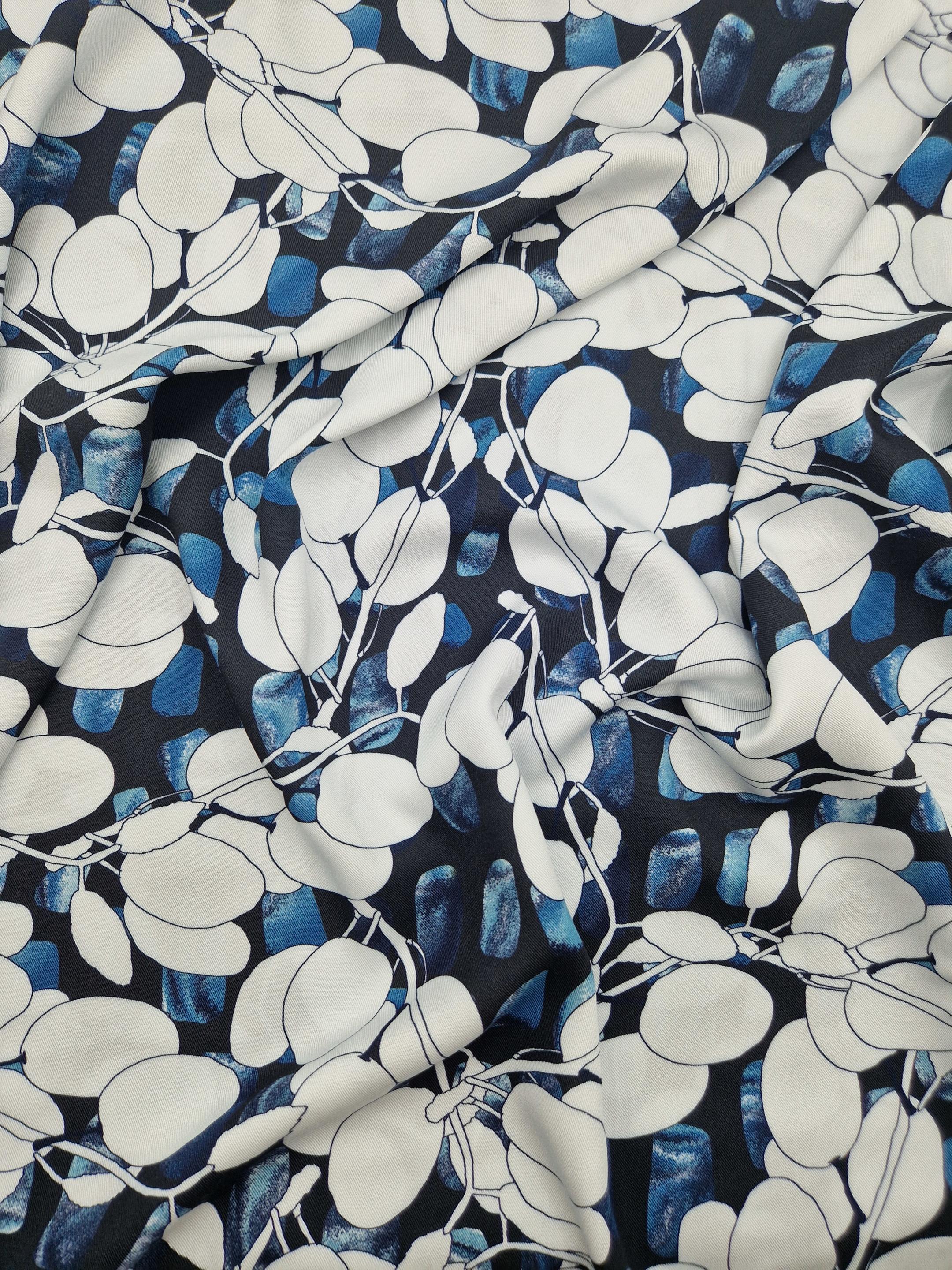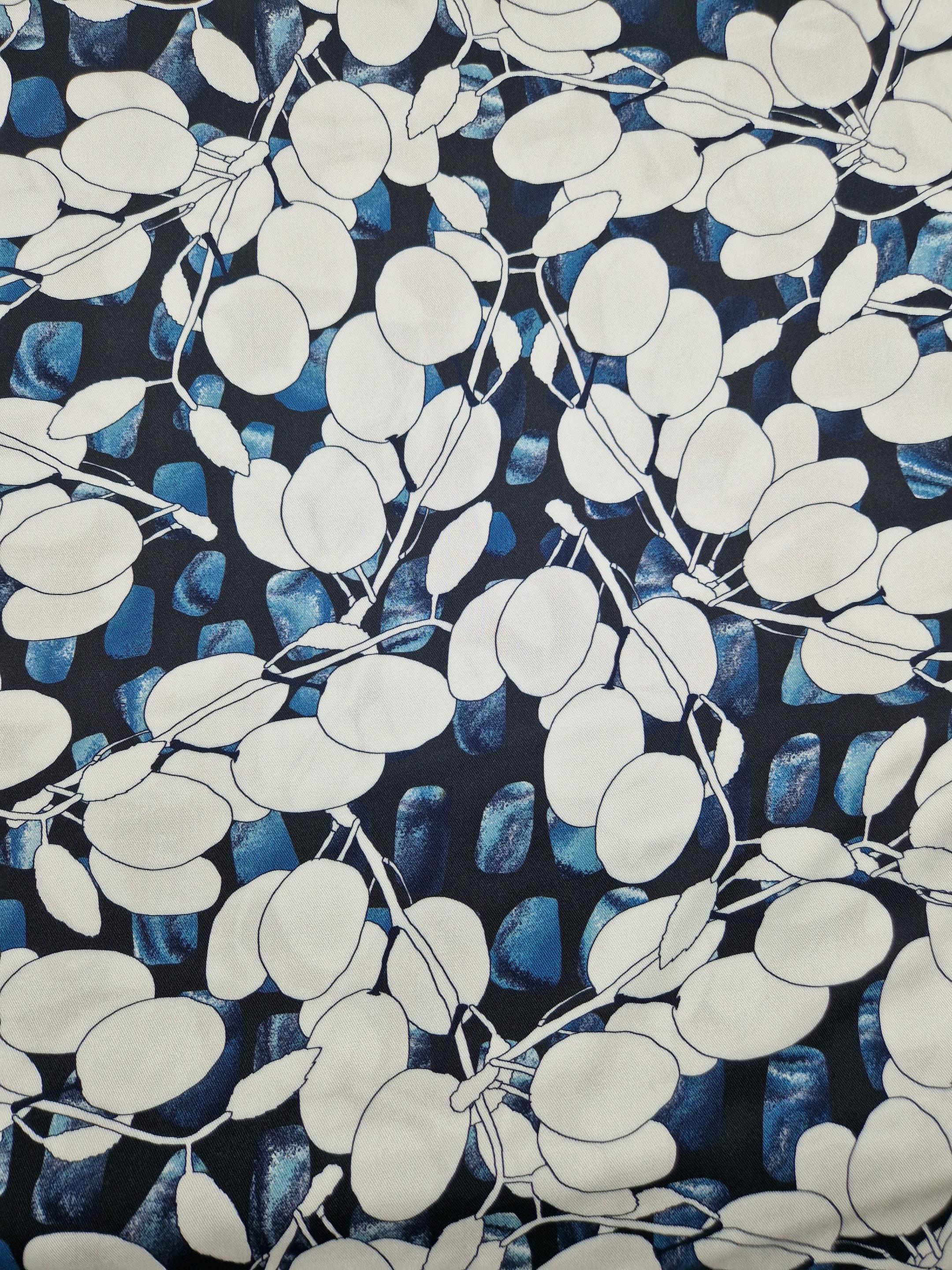 Laissez vous séduire par une palette de couleurs bleues et un motif végétal et abstrait pour la confection de vos pièces d’automne.
